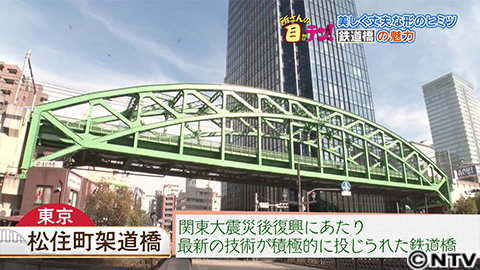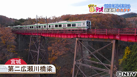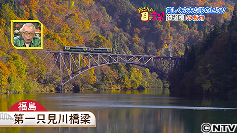 鉄道を支える橋。鉄道橋。雄大な景観の中でも、存在感を醸し出す迫力ある姿は鉄道ファンの間でも人気なんです。河川の多い日本では、様々な形の鉄道橋が作られ、技術の進化を感じられるのも魅力のひとつ。古いものでは明治時代に架けられて今日まで百年以上現役で使われているものも!日本最高クラスの高さを誇る足がすくむ渓谷にそびえ立つ鉄道橋!そして、広大な川を渡る美しいアーチの鉄道橋。いろんな形があるのは一体どうして?その理由に迫ります。今回の目がテン!は重い列車を100年近く支え続ける鉄道橋の科学です。