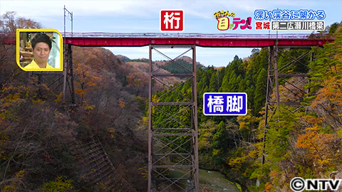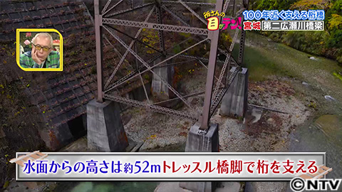 最初に見に行ったのは、宮城県にある第二広瀬川橋梁。水面からの高さは、なんとおよそ52m!昭和6年に架けられ、100年近く重い列車を支え続けている橋なんです。