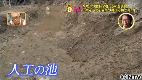 最初に振り替えるのは池。里のため池で実験を始めたのは、魚養殖の専門家、千葉先生。