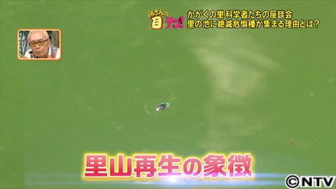 昆虫の専門家斉藤先生によると、タガメやミズスマシなどにとって、かつては日本のそこかしこにあった農業用のため池は、すむのに“ちょうどいい環境”だったよう。つまり絶滅危惧の生き物たちも、こうした環境が再生できれば再び戻ってくる。里のため池は、そのことを証明してくれているんです。
