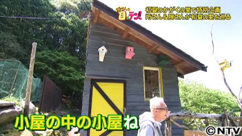続いて、里の間伐材を使って建てた「小屋の中の小屋」を見ていただきました。