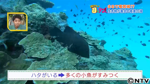 奄美の海には、こうした“ハタが住み着くサンゴの群集”がたくさんあるんです。
