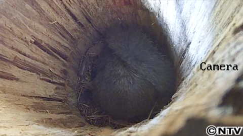 4月には、ムササビの巣箱についに動きが。なんとムササビが専用の巣箱に入ったんです。さらにこのムササビ、巣箱に入って体を丸め熟睡。野生のムササビがリラックスして眠る貴重な姿を初めて観察できたんです。