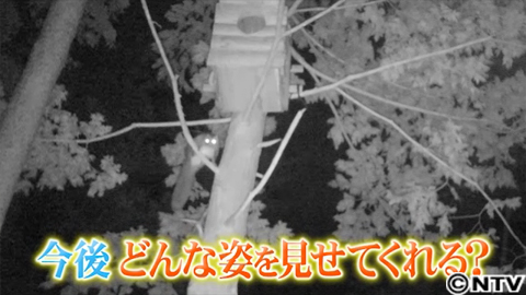 ムササビが眠り始めたのは、昼の1時。その後5時間、ムササビの巣箱で眠り続け、起きたのは夕方6時過ぎ。その後、エサを求めて夜の裏山に消えていきました。