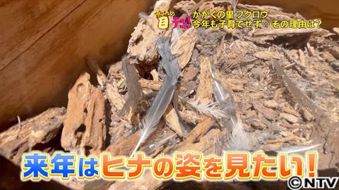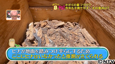 そこで後日。守山先生に現場を確認してもらいました!すると、ヒナはいなかったかもといいます。巣箱には、長期間フクロウがいたことを示す鳥の羽などの残骸が残っているのに、なぜヒナがいなかったとわかるんでしょうか?