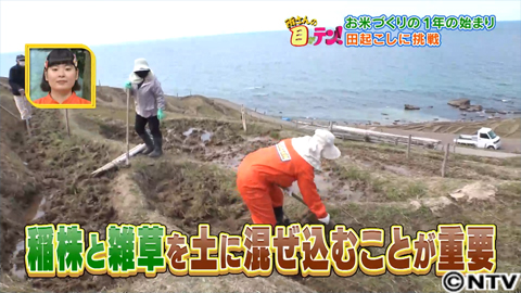 この田起こし、くわを使い、土を柔らかくするだけではなく、昨年の稲の株や雑草を土に混ぜ込むことが、とても重要なんです。