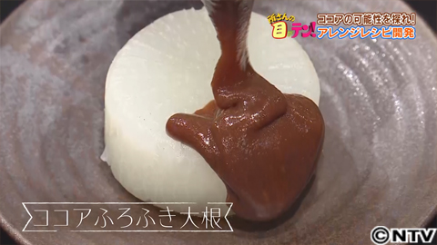さらに、自由な発想のもとどんどん試作。続いては、なんと白みそにココアを投入!?「ココアふろふき大根」が完成!