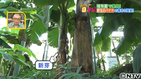 では、種がないのにどうやって増えるのでしょうか。大きく育ったバナナは、実をつけると枯れ脇から新芽が出て、成長しまた実をつけます。