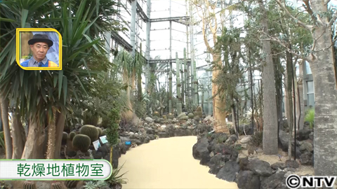さまざまな形に進化を遂げたサボテン、水の少ない乾燥地で、どのように生き残ってきたのでしょうか。実は、雨の降らない過酷な時期でも生き延びるため水を体に蓄えていたのです。表皮が分厚いサボテン。内部に熱が通りにくく、40度をこえる土漠や砂漠でも内部はひんやりしているといいます。植物園では、地球上のあらゆる環境に適応した植物たちを目の当たりにできるのです。