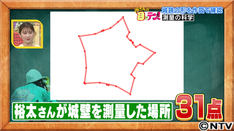 測量した点を見てみると、城壁の31カ所を測ることができていました。そして、その点同士をつなげると、なんと、星形のような地図になりました。