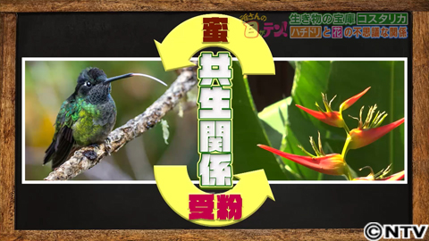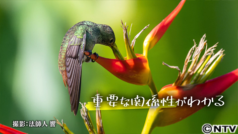 ハチドリがヘリコニアという花の蜜を吸う様子。実はこれ、ハチドリとヘリコニアの、ある重要な関係性がわかる瞬間なんです。