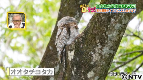 そして、木の枝に化けているシャチホコガの仲間。さらに、木の枝と見間違えるぐらい同化しているのは、中南米に生息するオオタチヨタカのひな。