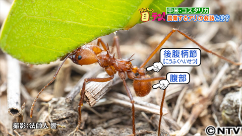 ハキリアリについて研究している九州大学の村上貴弘先生に聞いてみると、「ここにいい葉っぱがある」と、他のアリたちに教えているといいます。