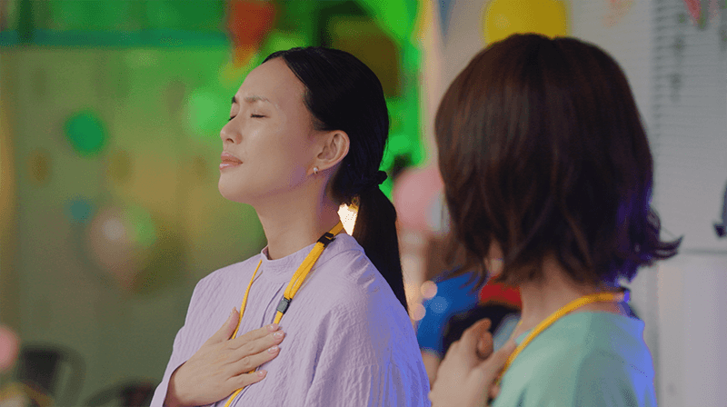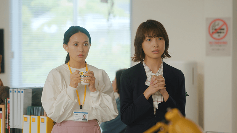 大知(曽田陵介)が慌てて事務所のドアを開けると、ちょうど入ってこようとした本郷係長(阿部進之介)の胸に飛び込むような体勢に。尊さに悶絶する乙(臼田あさ美)。そんな乙の挙動をつぶさに観察していた営業部の若手社員・しずく(芋生悠)は、乙をランチへ誘い出し、同担であることを告白。遠くから眺めて萌えていたい、と意気投合し、一緒に推しを見守ることを約束する乙としずく。そこへ本郷係長と大知がやってきて……!