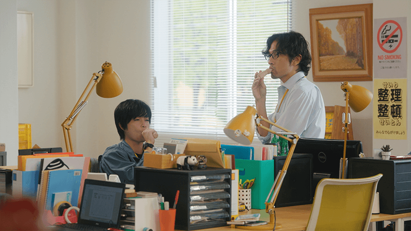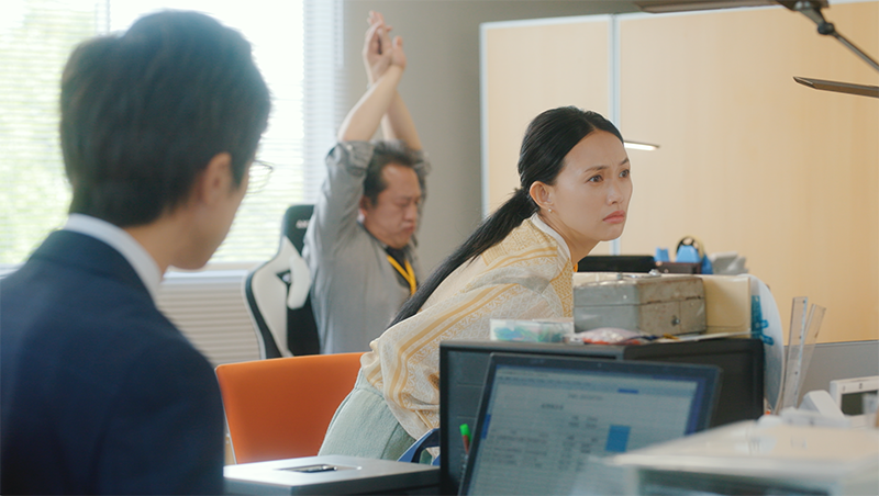スパイスの効いたスープカレーを肌着姿で頬張る本郷係長(阿部進之介)。その横で大知(曽田陵介)はシャツに着いたシミを丁寧にふき取っている。神々しき推しのやり取りに、乙(臼田あさ美)としずく(芋生悠)は直視することさえできなかった。午後の業務が開始され、社員宛てに一斉メールが届く。それを目にしたしずくたちは衝撃を受ける……。