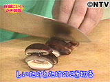 干し椎茸はあられ切りにする。たけのこはうす切り、三つ葉は2cm長さに切る。 |