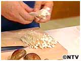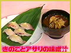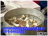 鍋に水、はまちのアラを入れ火にかけ、しばらく煮た中に、きのこ、あさりを加える。 |