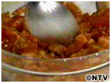 ソースを作る。トマトをさいの目にきり、レモン汁をかける。 |