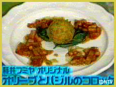 茹でたジャガイモをつぶし、グリーンオリーブ、生クリーム、白ワイン、塩、こしょうオリーブオイルを加えて混ぜ、最後にバジルを加えて更に混ぜる。 |