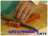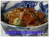 まぐろをぶつ切りにする。きゅうりを薄切りにする。