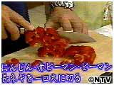 生椎茸は4等分、茄子は斜め切り、人参、長ネギ、ピーマン、赤ピーマンは一口大に切る。にんにくはみじん切りにする。 |