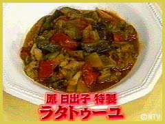 鍋にオリーブオイル(大さじ2)、にんにくを入れ炒め、茄子を加えて十分に炒めてから、オリーブオイルを足しながら残りの野菜を炒める。 |