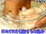 ほたてに片栗粉(大さじ1/2)をよくもみこむ。 |