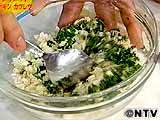 ボールにパン粉、アーモンド、ローズマリー、バジル、パセリ、にん にく、オリーブオイルを合せる。 |