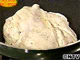 ソテー下鶏肉の片面にマスタードを塗る。 |