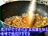 煮汁が出てきたら豆板醤を加え、味噌で味付けする。 |