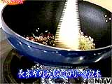 中華鍋に油を引き、にんにく、豆板醤を入れ、長ネギを入れて炒める。