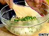 ごはんに生姜、炒りごま、万能ネギを加え、混ぜ合わせる。