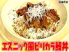 鰻とタレをごはんにのせ、粉山椒をかけ、白髪ネギをのせる。