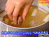 だし汁で大根を柔らかくなるまで煮たら、つみれを煮る。