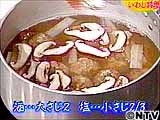 薄切りにしたしいたけを入れ、酒、塩、薄口醤油を加える。