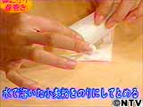 水で溶いた小麦粉をのりにして春巻きの端をとめる。