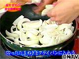 切った玉ねぎをフライパンに入れ、ラードで玉ねぎを炒める