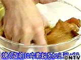 焼く直前に片栗粉を加え混ぜる。
