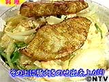 どんぶりにご飯を盛り、その上に炒めた野菜、豚肉をのせ出来上がり。