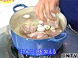 水をはった鍋にテール肉を入れ、にんにくを加える。