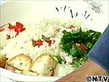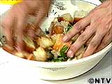 ツナ、バージンオリーブオイルを加え、ワインビネガー、クレージーソルトで味付けをし、バージンオリーブオイルがなじむまで混ぜる。 |