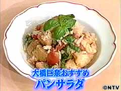 ボールに切ったトマト、パン、玉ねぎ、生バシルを入れる。