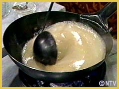 スープが煮立ってきたらもどしたフカヒレを入れる