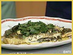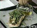 アルミホイルをかぶせて200度に温めたオーブンで20分間焼き、焼きあがりにイタリアンパセリをのせ、エキストラバージンオリーブオイルをたっぷりかけ、レモンをしぼって食べる