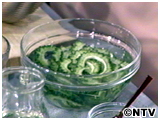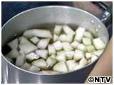 沸騰したカツオだし汁6カップに冬瓜を入れ、一口大に切ったポークを入れ、煮えたらみそを加えて出来上がり。 |