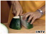 冬瓜を切り、種を取り除き、皮を剥き、細かく切っておく。 |