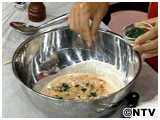 ボールに、生うに、トマトソース、生クリームを入れ、軽くかき混ぜる。 塩とパセリとHow1のニンニクソース大さじ2をボールに入れる。 |