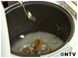 椎茸の軸を細かく切って、米に加え、醤油少々、塩少々を加え、炊飯器で普通に炊く |