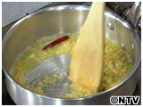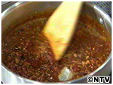バターを熱し、にんにくとしょうがのみじん切り、鷹の爪を炒める 長ねぎのみじん切り、椎茸のみじん切りを加え、更に炒め、赤ワインビネガー、フォンドボゥを加えて、灰汁をとりながら、煮詰める |