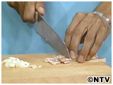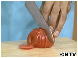トマトを薄くスライスする 玉ねぎをみじん切りにする |